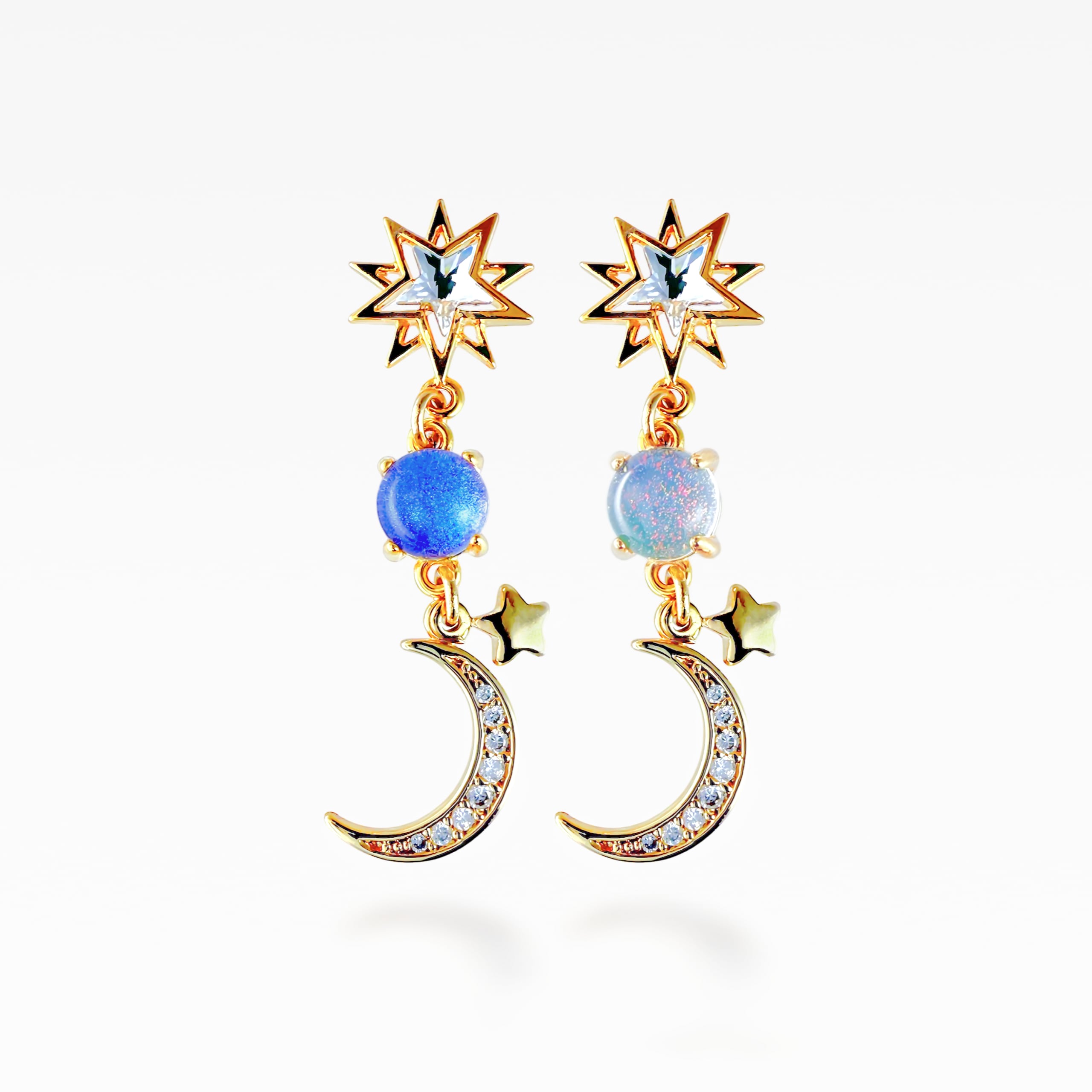 月と星をデザインした耳飾り。
