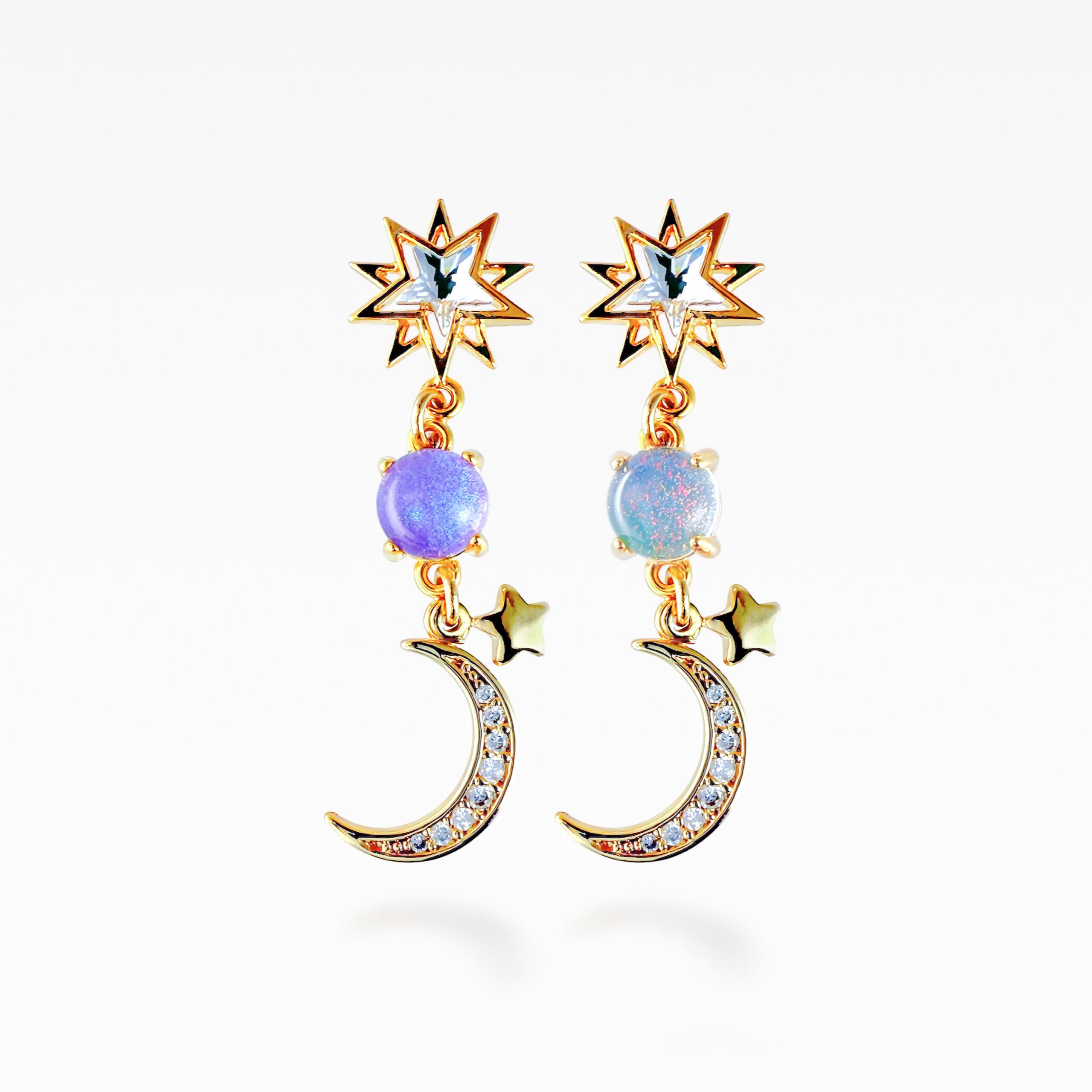 月と星をデザインした耳飾りです。